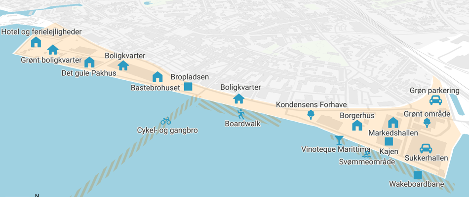 Havnebyen Guldborgsund sætter rammerne for havneudviklingen i Nykøbing F., mens Markedshallen står for det daglige liv med events, fællesskab og aktiviteter i den sydlige ende af havnen.